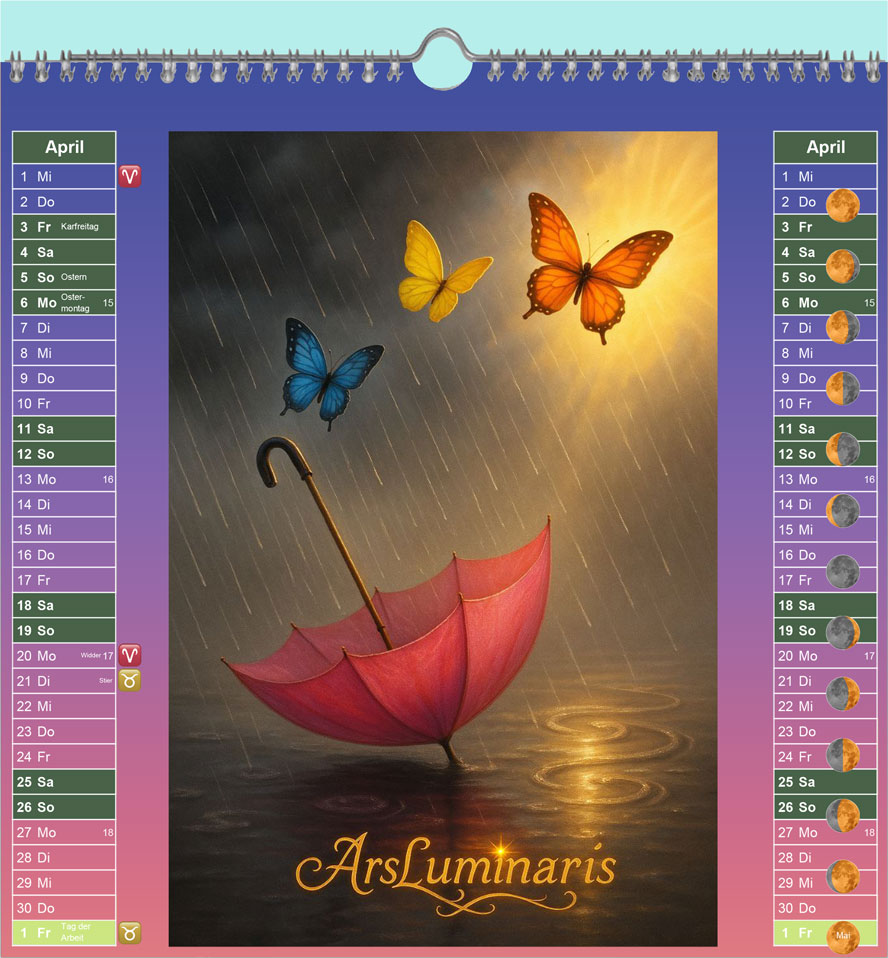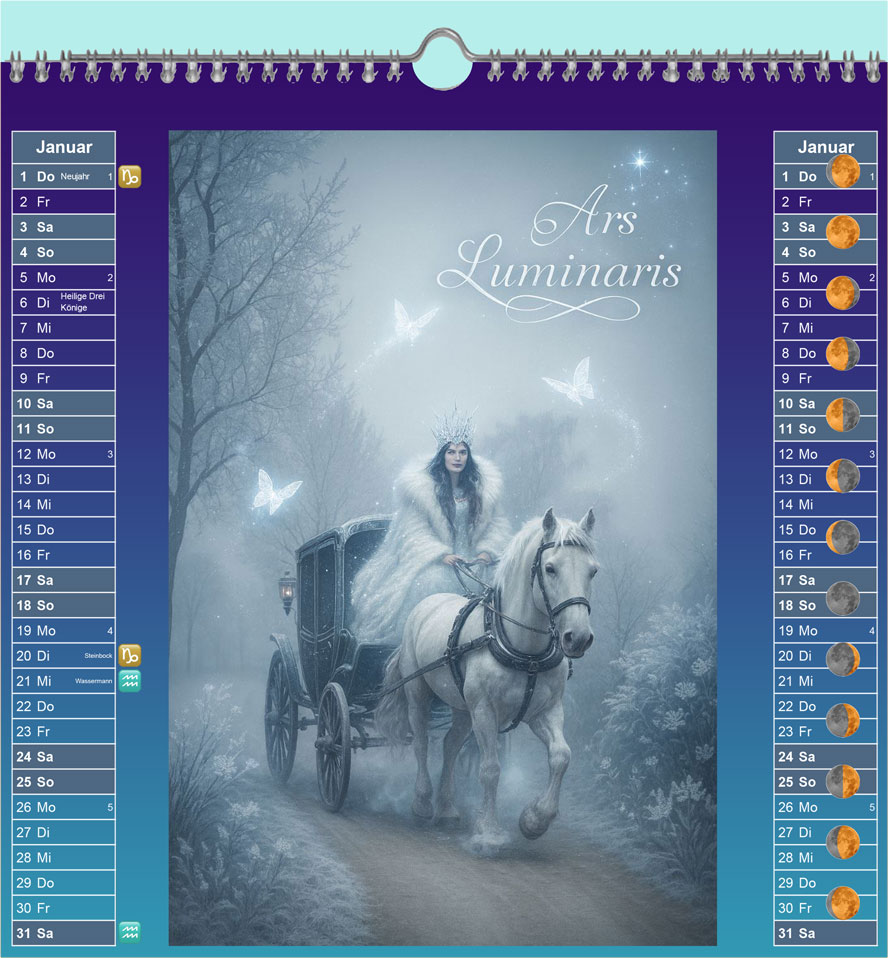 Ars Luminaris ~ ZauberWelten 2026 ~ der ultimative Monatswandkalender mit Spiralheftung