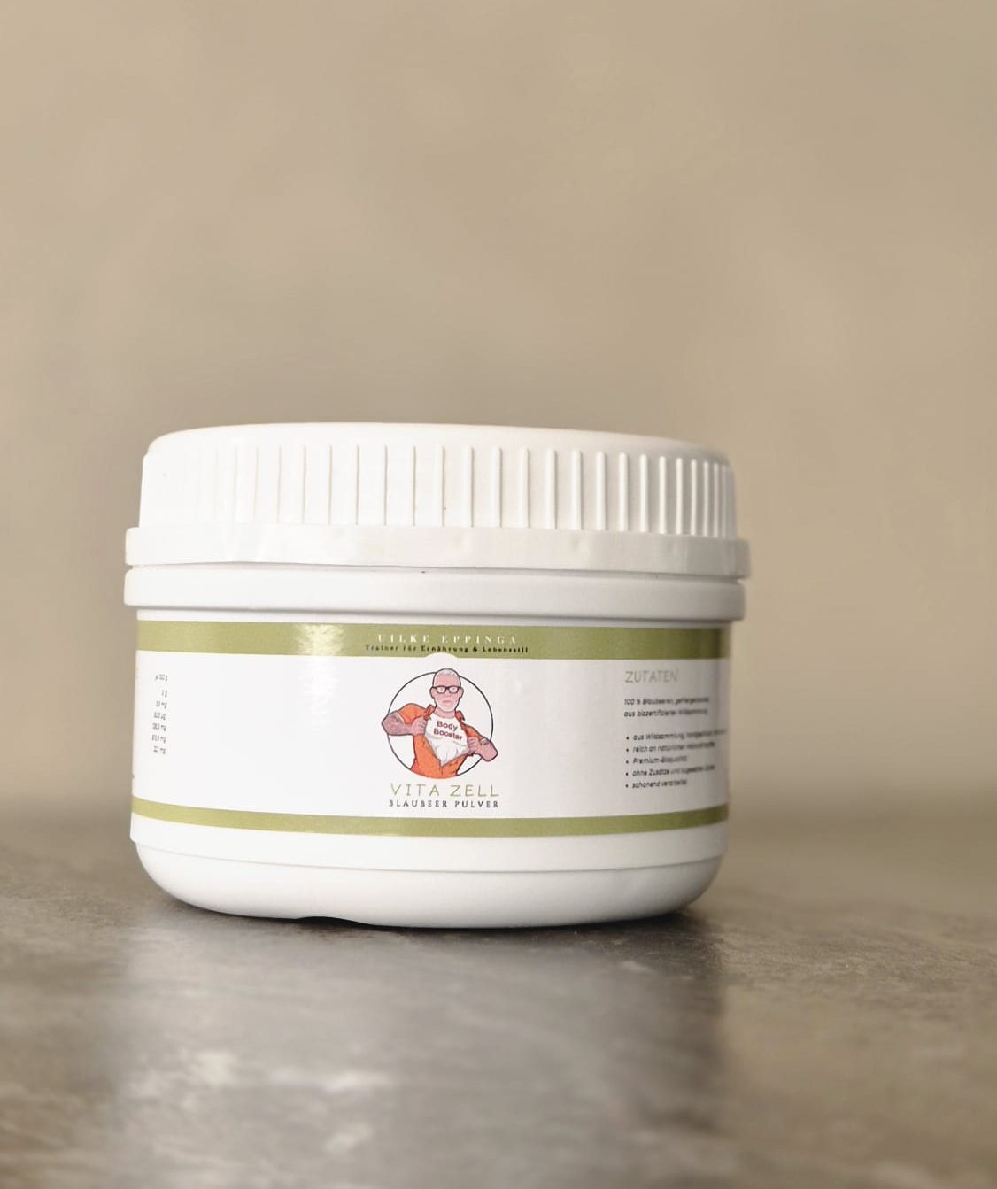 Während dem Body Booster: 1 TL (5 g) Vita Zell wird morgens zusammen mit 30 ml Aloe und ca. 10 g Mango Ment in 300 ml Wasser gemischt.